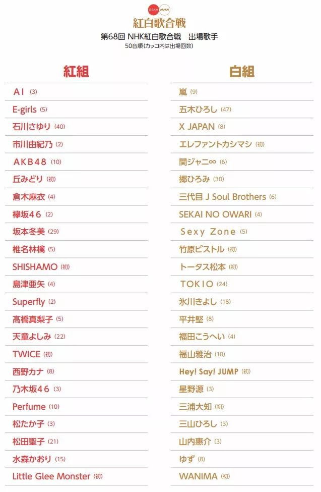 日本年度盛事 17年nhk红白歌合战出场歌手名单公布 Japaholic